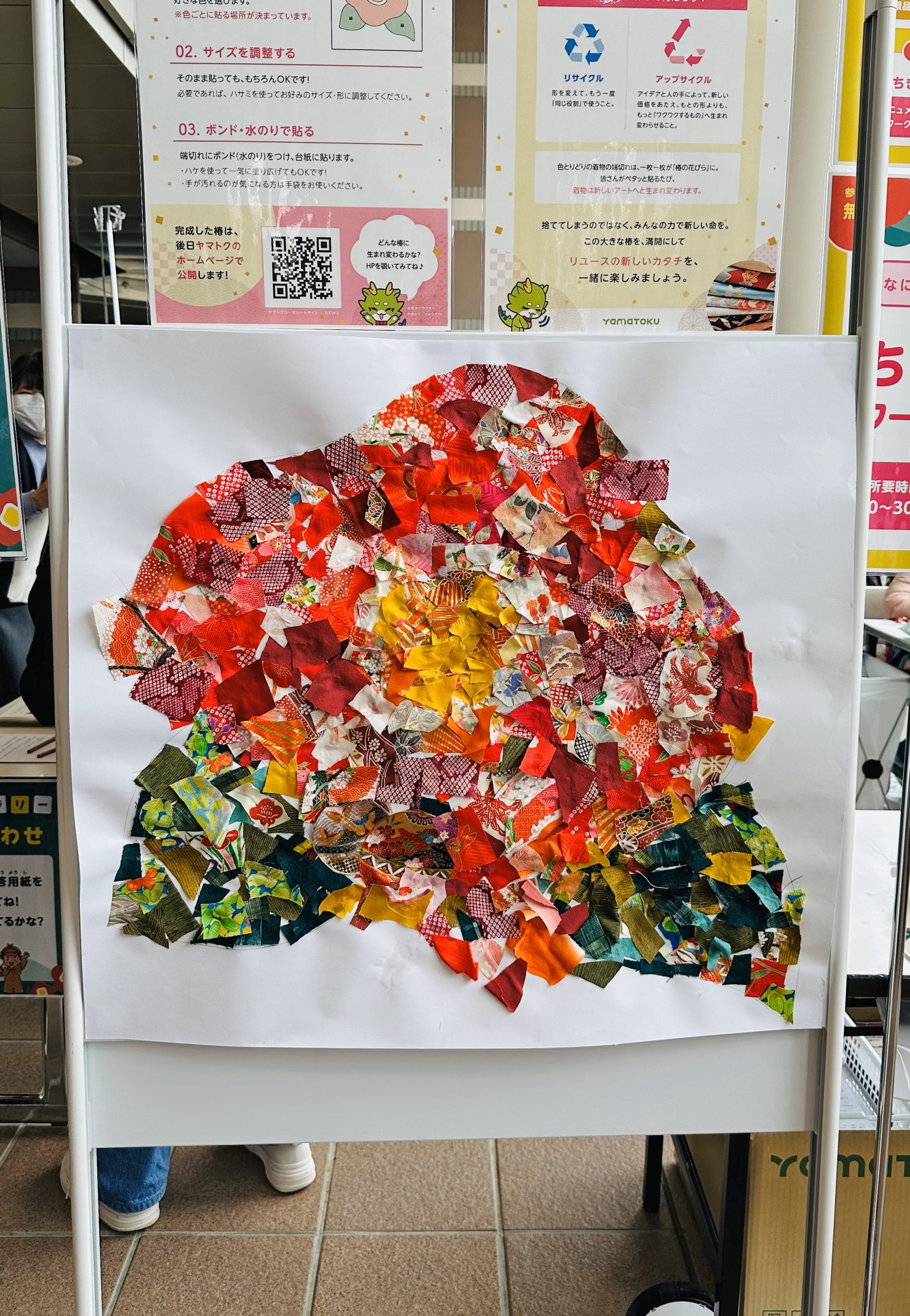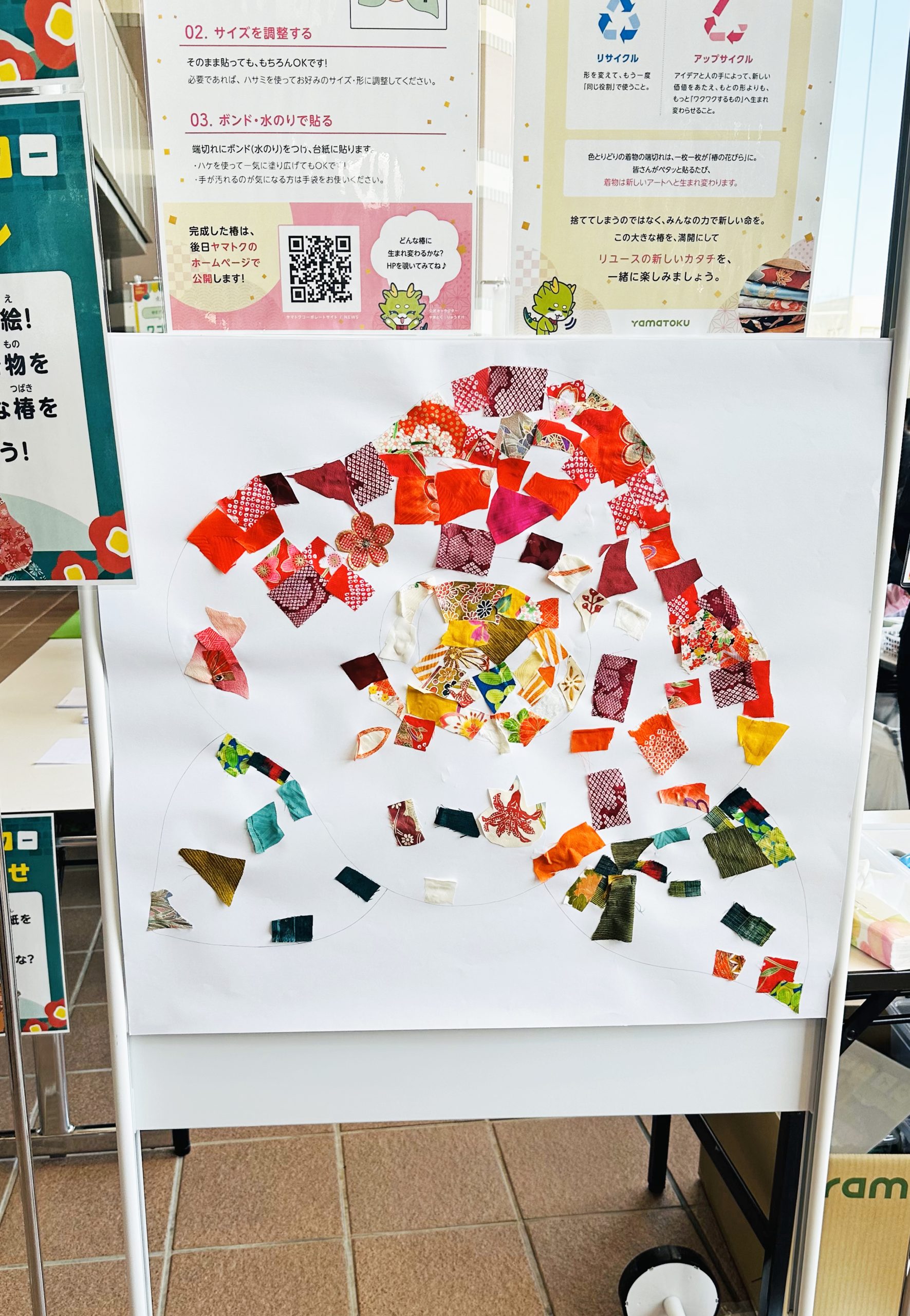 着物生地を使用した「ちぎり絵モニュメント」を実施いたしました。